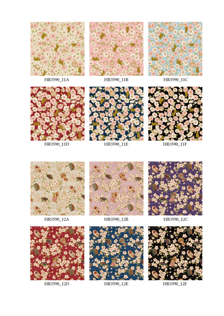 and other designs scattered amongst blooming cherry blossoms.
