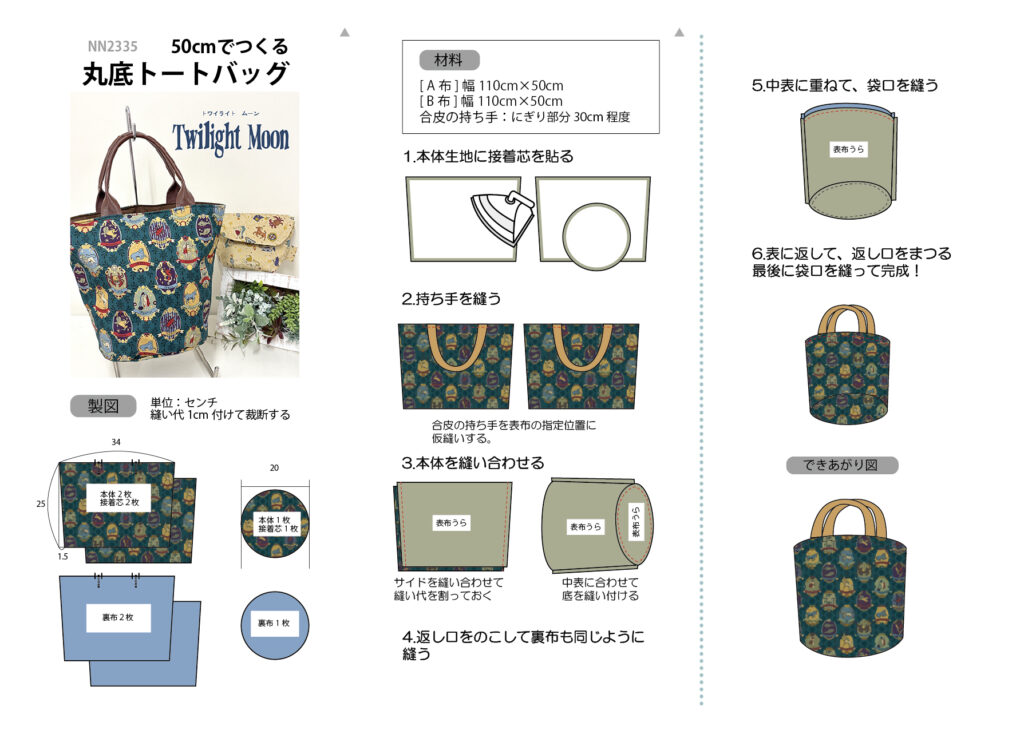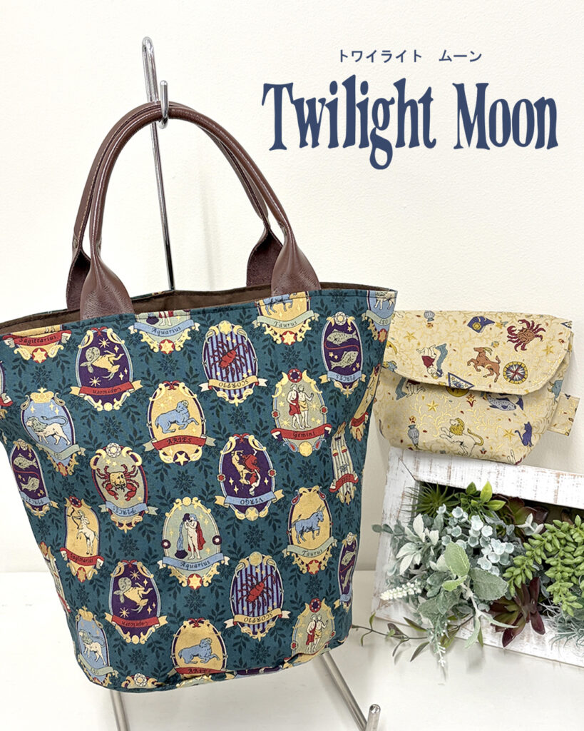 Twilight moonの生地を使って丸底トートバッグを作りました。