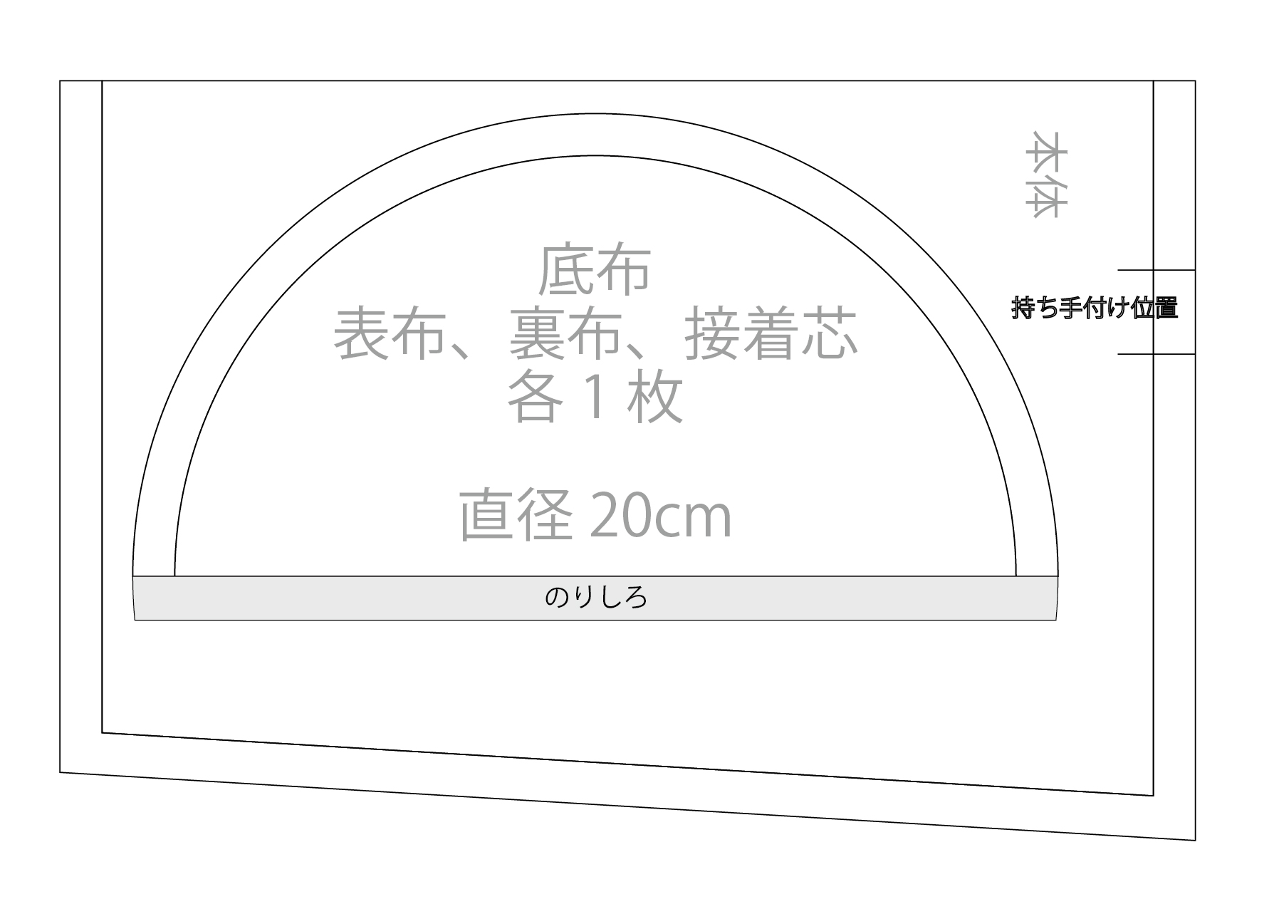 2.持ち手を本体に仮縫いする
